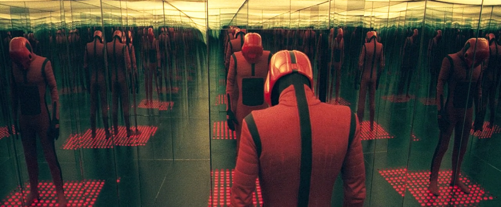 Ако не сте чували за този филм, не се притеснявайте, не сте единствени. „Отвъд черната дъга“ е първият филм на режисьора Панос Косматос. Това име обаче може би ви е познато. Той е син на Джордж Косматос, работил по филми като „Зорба гъркът“ (Alexis Zorbas) и „Рамбо: Първа кръв, част II“ (Rambo: First Blood Part II). Лентата на Панос Косматос пък е психологически хорър, в който се разказва за момиче, затворено във футуристичен институт, който има за цел да направи хората щастливи… Помислете си само за какво става въпрос, когато ви кажа, че Панос е силно вдъхновен от Кубрик. И, само за да ви зарибя още малко, кадърът показва на т.нар. сентионавт – синтетично същество, което прониква и променя чувствата на хората.