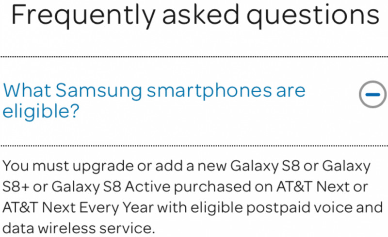 Информация за това, че Galaxy S8 Active предстои да бъде представен, може да бъде намерена в секцията „Често задавани въпроси“ за за текуща реклама на AT&T и Samsung. Вижте скрийншот по-долу.