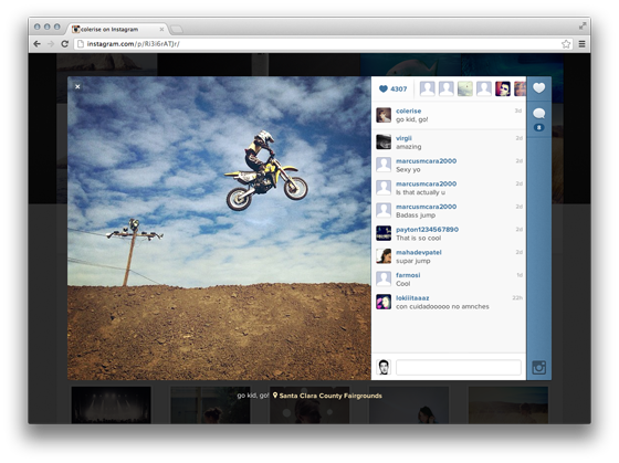 Instagram обяви вчера, че пуска официално уеб профили на потребителите, където те да разглеждат своите и снимките на приятелите си. Всеки профил включва „timeline тип“ голямо изображение, бутон за следване и галерия на снимките на съответния акаунт.