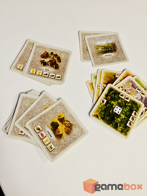 След като приключите с хвърлянето на заровете и всички приятни (или не особено) действия, свързани с тях, можете в определен ред да извършите действията си. Тъй като в началото на играта теглите няколко карти от така наречените тестета с „Основни карти”, можете да играете една или повече от тях. Те най-основно се делят на действия, които ви дават бонус (или прецакват опонента ви) веднага и имат еднократен ефект, и постройки, сред които обаче има и личности. Те могат да се поставят в селото ви над градовете и селата и имат доста разнообразни ефекти.