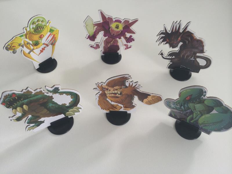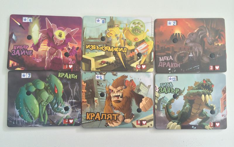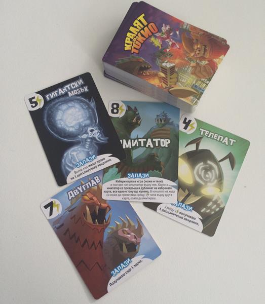 Още от кутията си личи, че компонентите на Кралят на Токио са доста качествени. Игралното табло, което служи само за индикация кой се намира в града, е красиво и илюстрирано със същия комичен стил, който съпровожда цялата игра. Шестте чудовища се различават само визуално, но за сметка на това са интересни и можете да ги свържете с познати образи от филми. Таблата за отбелязване на точките изглеждат добре, но тъй като се използват през цялото време, трябва да знаете, че бързо ще се износят. Другото, което не ми хареса в таблата е, че идват предварително сглобени и е трудно да се разглобят, за да се сложат някакви протектори против износването. Това, разбира се, са дребни проблеми, но аз обичам винаги да предпазвам от износване по-играните си заглавия. За сметка на това, заровете са големи и много качествени – преди да видя българското издание, съм изпробвал оригиналния King of Tokyo и съм сигурен, че в изданието на Фантасмагория качеството на заровете е завишено с една идея. Останалите компоненти – картите с умения, маркерите за по-специалните умения и кристалите за отмерване на енергия също са на ниво.