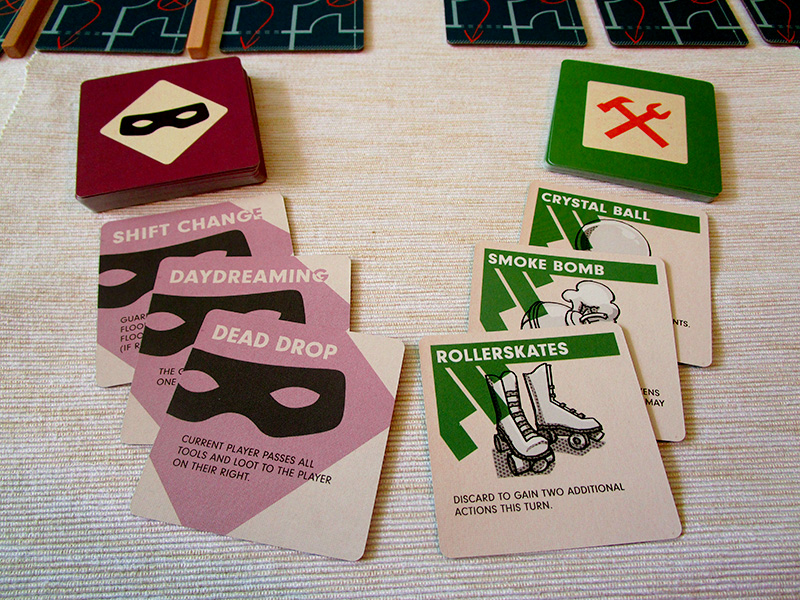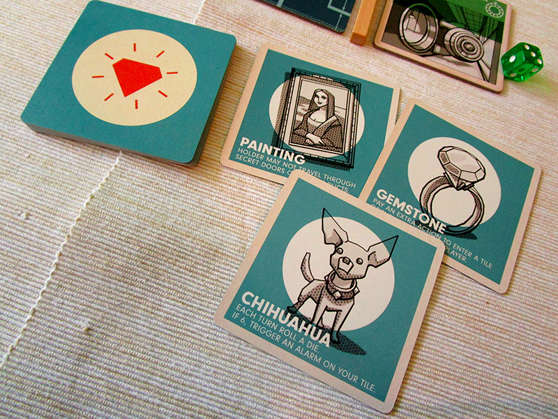 Отворите ли вратата на сейфа, ще бъдете посрещнати от така желаното му съдържание. Loot картите в Burgle Bros. са любим мой елемент, тъй като съдържат немалка доза хумор, докато разнообразяват протичането на отделните сесии. Не можете да спечелите играта без да изнесете всичките откраднати богатства, въпреки че те често прецакват този, който ги носи. А в сейфовете се намират доста любопитни предмети. Персийското коте например може във всеки момент да избяга от ръцете ви и да се наложи да го гоните из изпълнените с препятствия коридори. Тиарата ви прави толкова великолепен, че пазачите ви виждат как блестите от съседната стая. Докато държите огледалото губите едно от действията си… за да се огледате! Това може да ви звучи забавно и странно едновременно, но е един допълнителен пласт в геймплея на Burgle Bros. и пресъздава успешно идеята, че има много непредвидени обстоятелства и трябва да преценявате ситуацията постоянно.