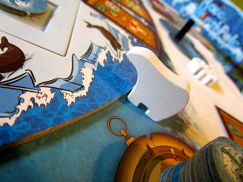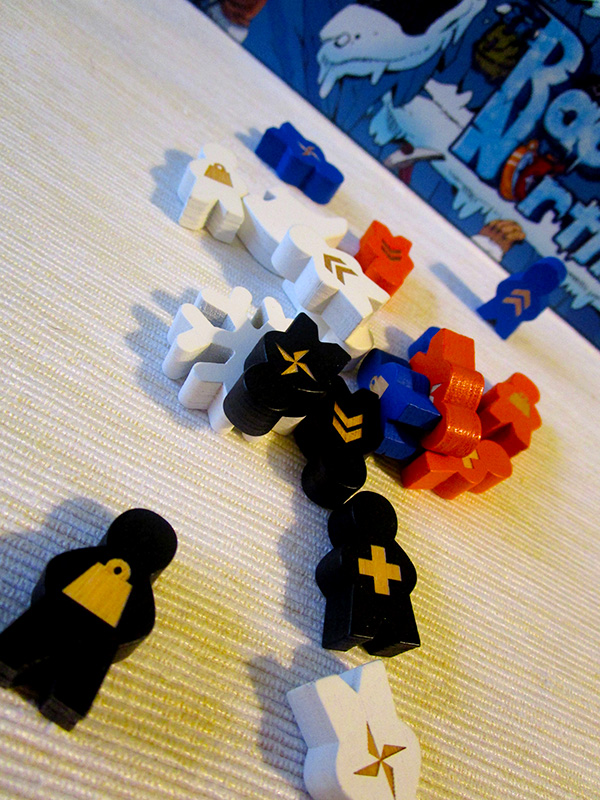 Екипировката например ви предоставя нови и много полезни умения за оцеляване в суровите условия. Предмети като иглута, кирки и дори хъски често са решаващи за мъчното достигане до центъра на таблото на Race to the North Pole. Лошите жетони пък включват разнообразни начини да се прецакате – от дупка в леда, до полярна мечка, която всички могат да нахранят (с останалите играчи, разбира се). Ако ви писне от включените в играта жетони, Playmore Games са ви оставили няколко празни – а да видим какви сте дизайнери!