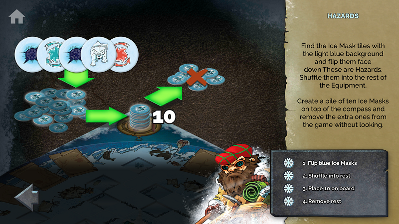 Няколкото вида добри и лоши жетони с ледени маски много разнообразяват процеса на игра на Race to the North Pole. Dized отново ви запознава с екипировката когато му дойде времето – в това отношение приложението е брилянтно, защото не хвърля в лицето ви нищо, до което още не сте стигнали. Тоест няма риск нито да ви затрупат с правила, нито да ви се обясни нещо, което ще забравите до момента, в който стигнете до него. Докато си изследвате ледената повърхност, често ще се натъквате на жетоните с маски – както споменах те са позитивни и негативни и няма как да знаете какво ще ви връхлети, докато не го разкриете.