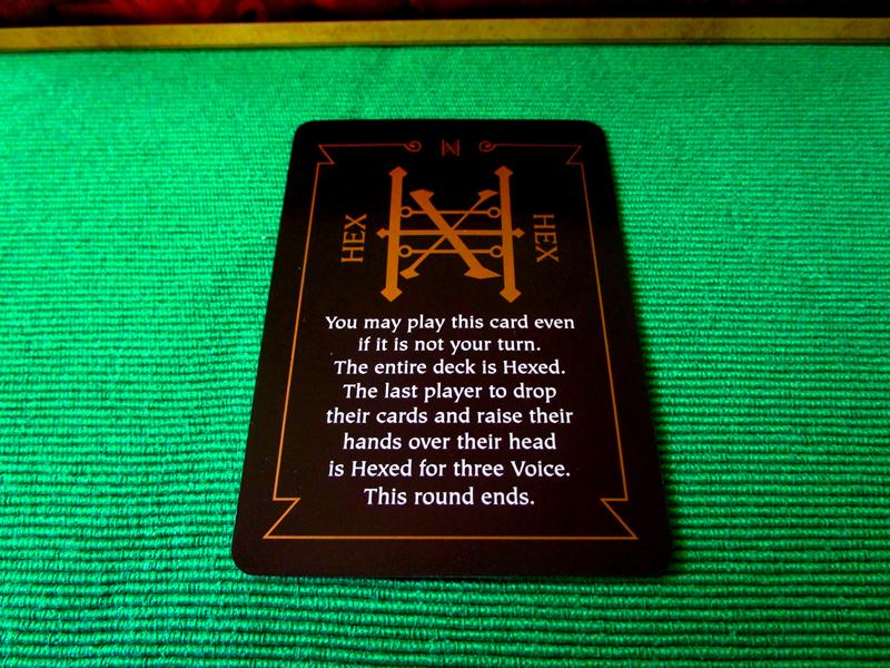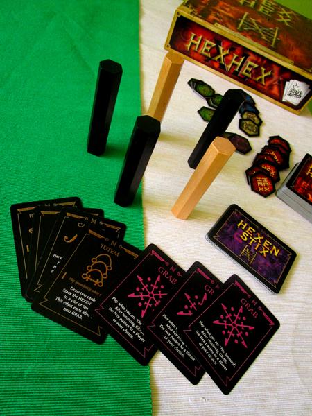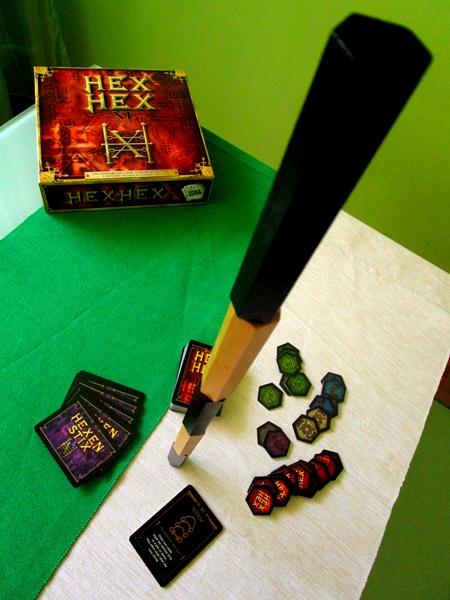 Играта звучи много интригуващо и динамично на теория – група вещери се замерят с проклятия, които се раздвояват, рикушират и удрят случайни мишени. Всъщност обаче в моментът, в който се появи второто проклятие Hex Hex става малко по-бавна, защото се налага двама души да избират картите си едновременно.