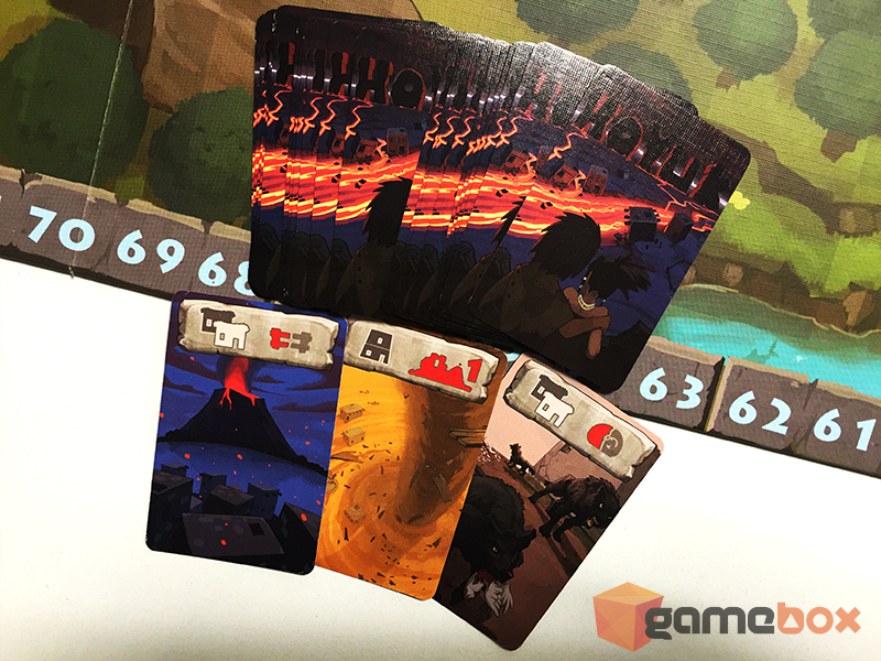 Очевидно праисторическите богове не са се различавали много от сегашните, защото в Höyük за всеки ход след първия ще трябва да изтеглите и изпълните една карта с катастрофи. Те най-често засягат най-големите или най-малките блокове и имат доста разнообразни ефекти. Изглежда че предците ни са имали доста по-големи проблеми от нас, защото сред тези карти ще срещнете доста разрушителни земетресения, суша и дори нападение от вълци. Счупеният ви айфон не може да се мери с неприятностите, които могат да сполетят фамилиите ви в Höyük.