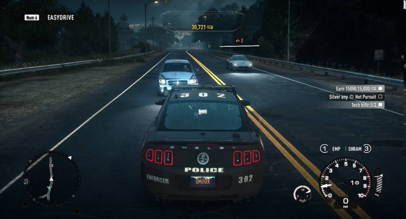 От един момент нататък, всичко опира до дълги гонки с полицията и трескаво търсене на сервизи за поправяне. А понеже е open world, Need for Speed Rivals не поставя допълнителни мантинели или ограничения по време на състезанията, та пътят, който трябва да следвате, за да завършите, е обозначен само на GPS-а. Това означава, че ако не внимавате, съвсем спокойно може да изтървете някой завой и после ходете да обяснявате, че не сте разбрали. Върховен момент в състезанието е, когато се врежете челно в някакъв обект и бегачката ви се разпилее, а играта ви пусне със 100км/ч в посока обратна на правилната. Безценно.