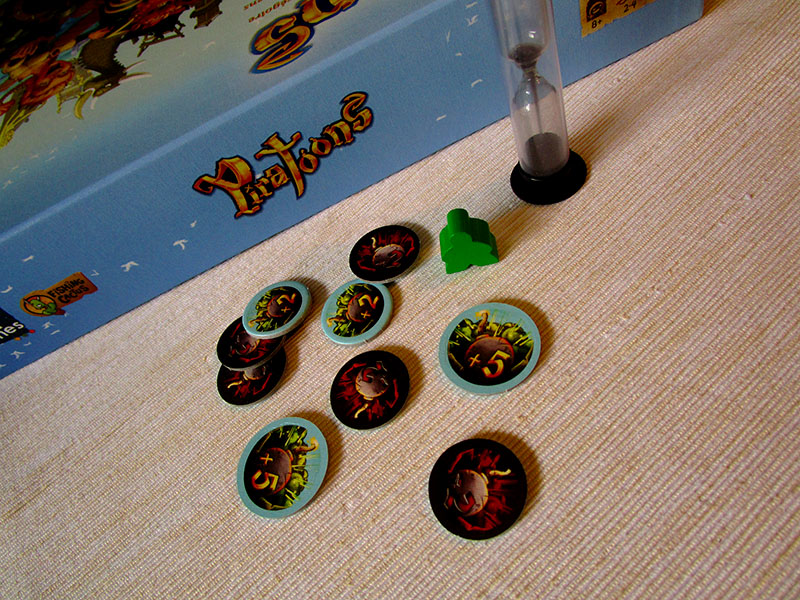 Проблемът ми с Piratoons е, че играта е точно толкова разчитаща на случайността, колкото е лека и лесна. С други думи, тя би била доста по-добра с добавянето на един допълнителен пласт сложност, съответно малко повече възможност за стратегия и избори. Както споменах, това е успешно реализирано с фазата на аукциона, но тя съвсем не е достатъчна да превърне играта в заглавие, изискващо малко повече мислене и малко по-малко мятане на монета. Броят на играчите пък директно влияе на качеството на Piratoons – от една страна искате да сте повече, за да може конфронтацията да е налице и да залагането да е оспорвано, но от друга страна при повече участници играта става прекално хаотична.
