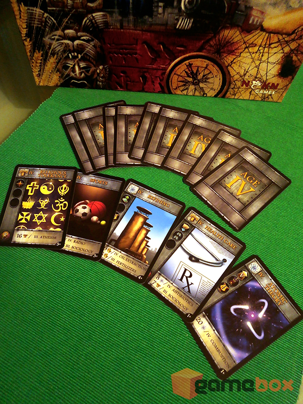 Уменията ви позволяват различен подход в началото на играта – дали ще се забавите като разработвате повече, но пък пестите карти, или ще бързате към следващите епохи, за да лазите по нервите на останалите, е изцяло във вашите ръце.