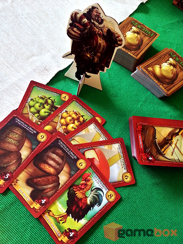 По-специалното на кралските стоки е, че на края на играта те се броят за две или три стоки от съответния тип, следователно можете да си осигурите допълнителни точки, ако се осмелите да ги натъпчете в торбата. Според мен това добавя известно разнообразие при изборите ви и ви насърчава към рискуване и затова бих препоръчал винаги да играете с тях.