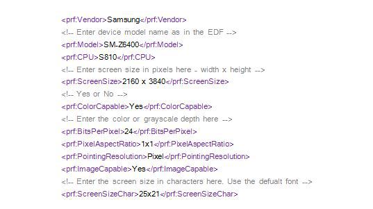 4K дисплей в телефон е нещо, което до преди две три години никой не е и вярвал, че ще може да види, но скоро ще бъде факт. Според последните течове от щаб квартирата на корейците, компанията ни готви джаджа, която ще има един безумно наситен с пикселчета дисплей. Кодовото му име е SM-Z6400, описаната във файла резолюция е 2160×3480 пиксела. Чесно казано все още не може да кажем на 100% дали това е телефон, защото може да е таблет, а може и да е някакъв прототип.