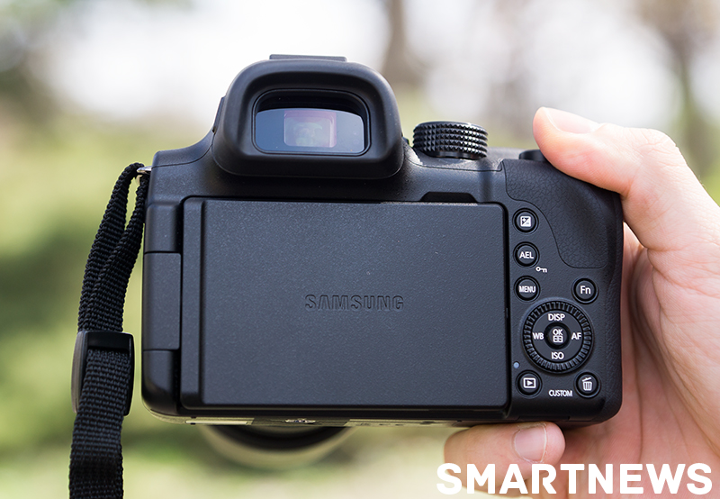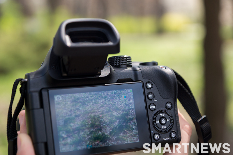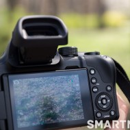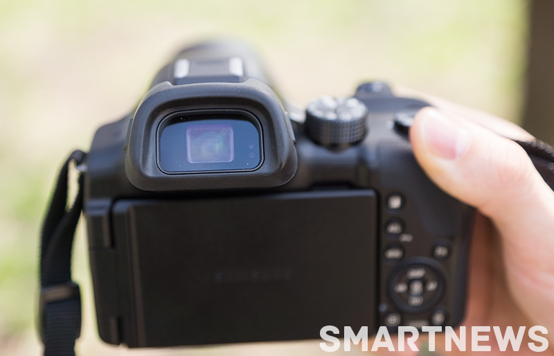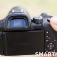Няколко думи и за визьорът, който е електронен и има възможност да бъде издърпан напред и нагоре, което ще бъде полезно в ситуации с по-малък ъгъл на снимане. По този начин позицията на визьора може да се персонализира до 80 градуса наклон. Имаме налични 2.4 милиона точки, както и сензор който при доближаване автоматично изключва дисплея. Лично на мен ми хареса много възможността да мога да персонализирам позицията му, но не ми хареса факта, че това, което се вижда през него е много малко. Може би свикнах със Sony-то, но тук определено това ми беше едно от големите неудобства и затова си ползвах през повечето време дисплея като визьор.