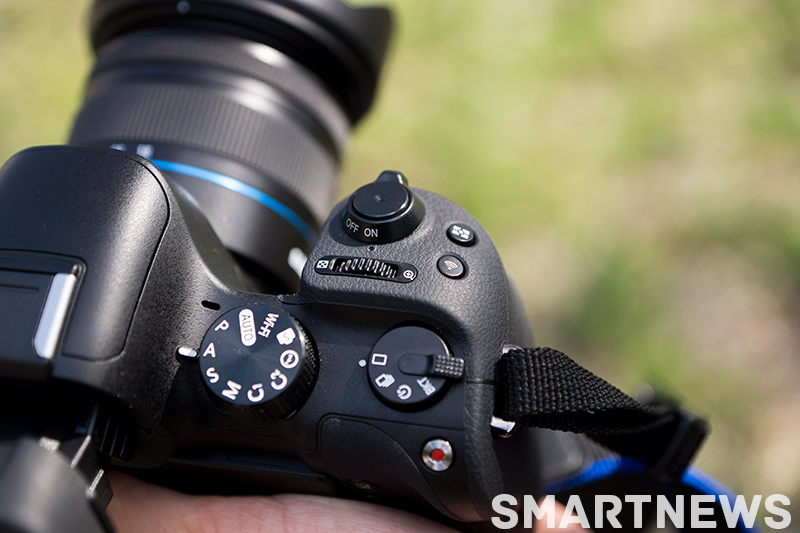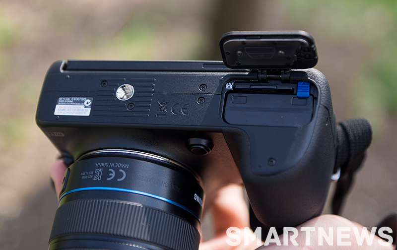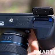 Нека да разгледаме и всичките копченца, които може да намерите по корпуса на NX30. Първо, от дясната част на дисплея имаме извадени допълнителни бутони, както и скролер, който е много удобен и ви позволява бързо да оперирате в менюто. Тук се намират и бутоните за компенсация на експозицията, AE заключване, меню, функции, преглед на снимките и изтриване. В горната дясна част имаме разположен контролер за бърз достъп до различните режими на снимане, а непосредствено до него е разположен и главният контролер на режимите. Тук имаме и 2 режима, които сами можете да програмирате. В горната част са разположени и бутоните за Wi-Fi, с който лесно и бързо ще можете да свържете фотоапарата и да споделите снимките, които сте направили, както и бутона за запис на видео. До тях са бутонът за снимане и скролер за настройките. [rquote]Имате бутони за всичко[/rquote]В страничната част на апарата ще намерите под специално капаче и micro USB и micro HDMI портовете.
