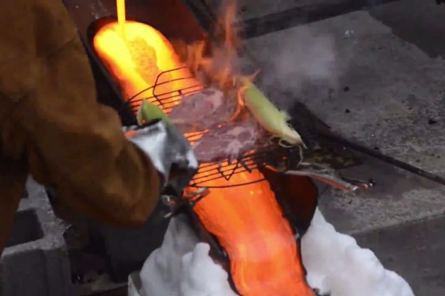 Някои хора си правят барбекю с въглища, а други просто слагат скарата над течаща разтопена лава. Както се казва, go big or go home!...